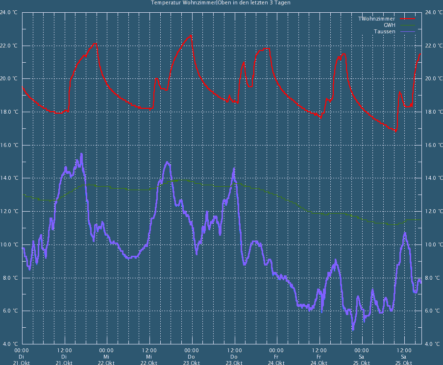 Die aktuellen Wetterdaten von allen Sensoren der Davis Vantage VP2 Pro und des RFXCOM Receivers ②